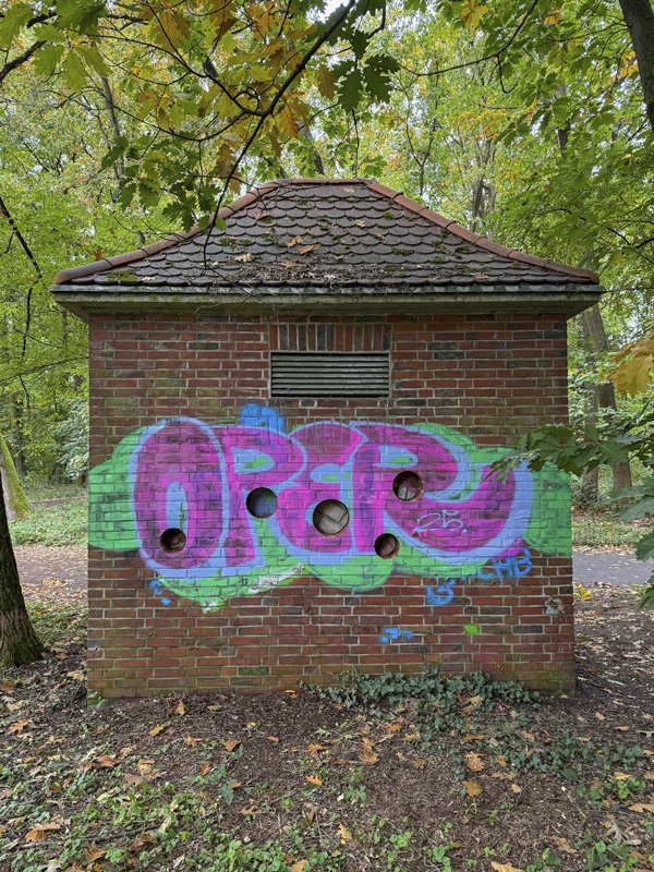 20 Kernbohrungen wurden vorgenommen, damit man in Zukunft sehen kann, was im Mini-Museum ausgestellt ist. Die Bohrlöcher haben einen Durchmesser von 20 bis 30 cm. Aufmerksame Betrachter*innen finden an den Wänden auch drei Öffnungen mit einem Durchmesser von 10 cm, die als dekorative Löcher konzipiert sind.