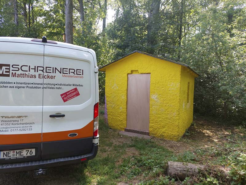 Kunstwerk ist gesichert 16. Juni 20235. Februar 2026 Tür und Fenster wurden verschlossen. Wir danken der Schreinerei Eicker, dass sie uns so schnell unterstützen konnte. Die zerstörte Glastür und die Glasfenster wurden entfernt und mit Holzplatten geschlossen.