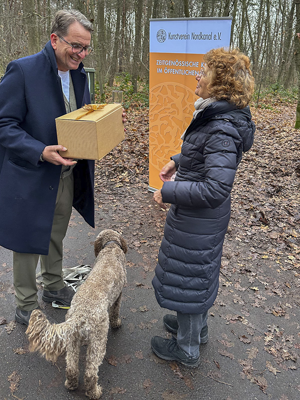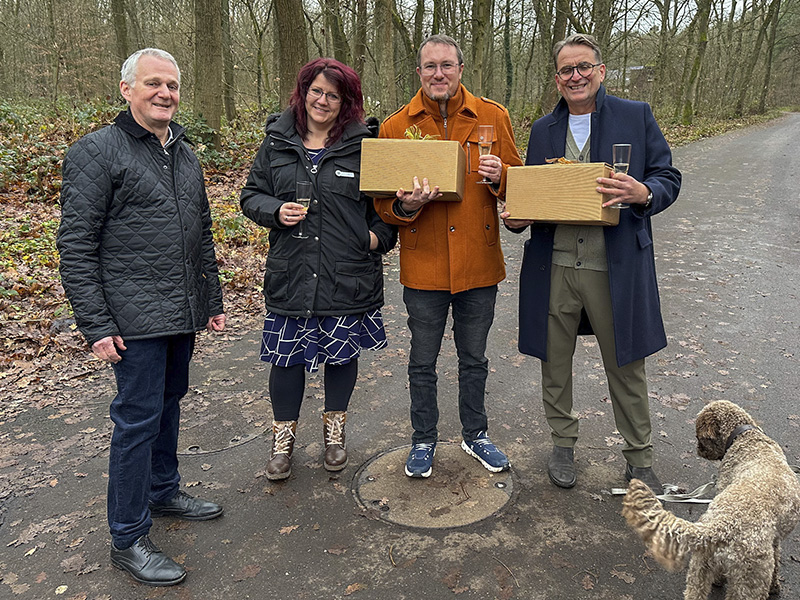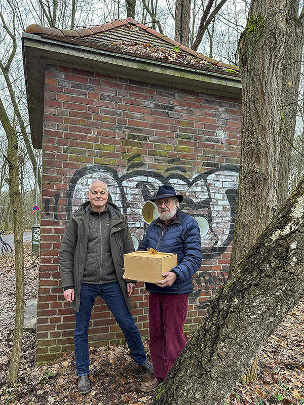Für die Handwerker, die am Umbau des Trafohauses beteiligt waren, veranstaltete der Vorstand und Beirat des Kunstvereins einen Sektempfang. Das Mini-Museum steht kurz vor der Vollendung. Für Neugierige lohnt sich ein Blick ins Innere: es weihnachtet.