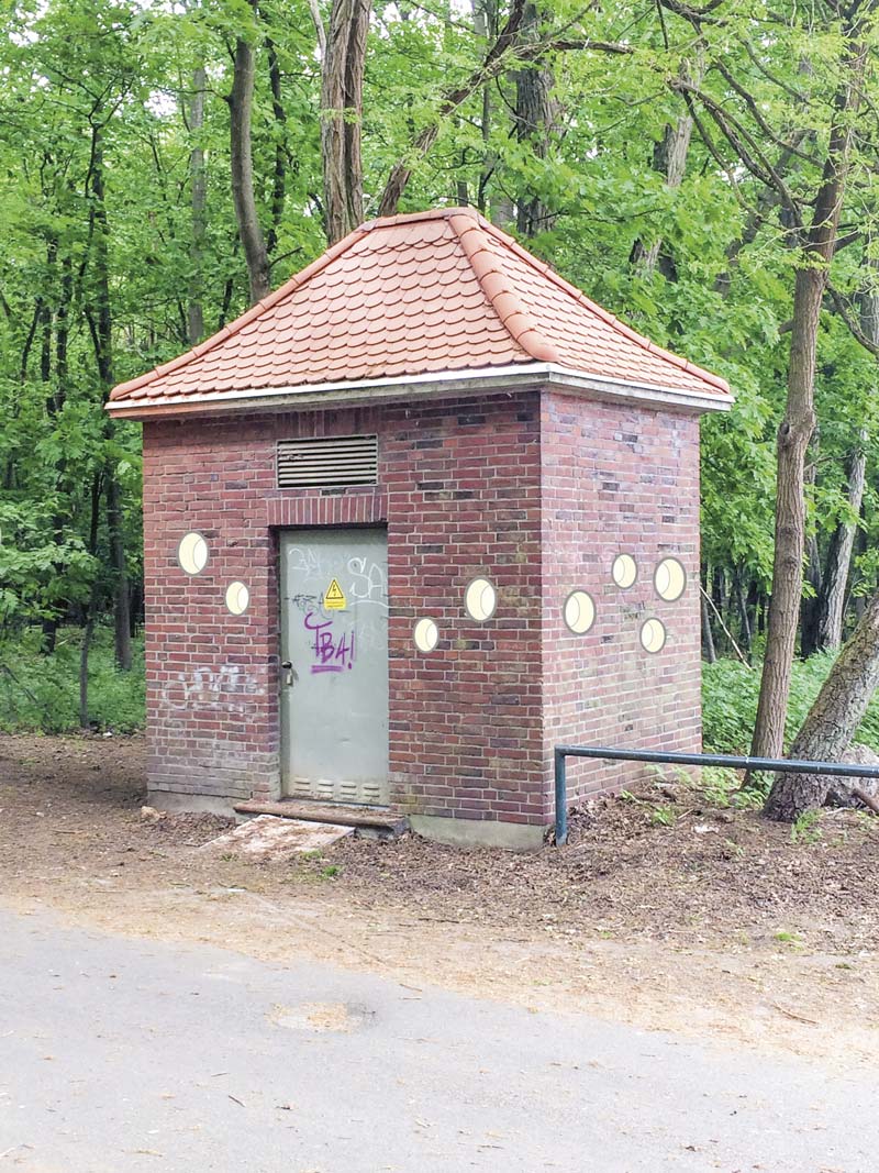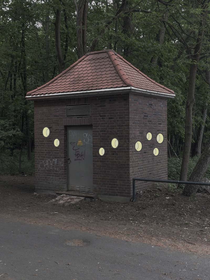 Der Kunstraum Trafohaus ist nicht begehbar. Doch ist die ausgestellte Kunst im Inneren durch Gucklöcher in allen vier Wänden erlebbar.