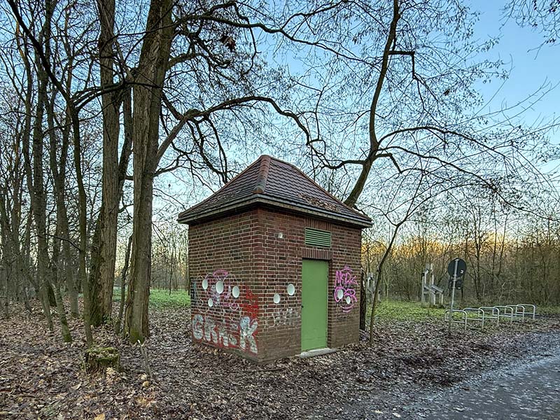 Das ehemalige Trafohaus im Vorster Wald wurde zwischen Oktober 2025 und März 2026 zu einem Ausstellungsraum umgebaut: dem Kunstraum Trafohaus.