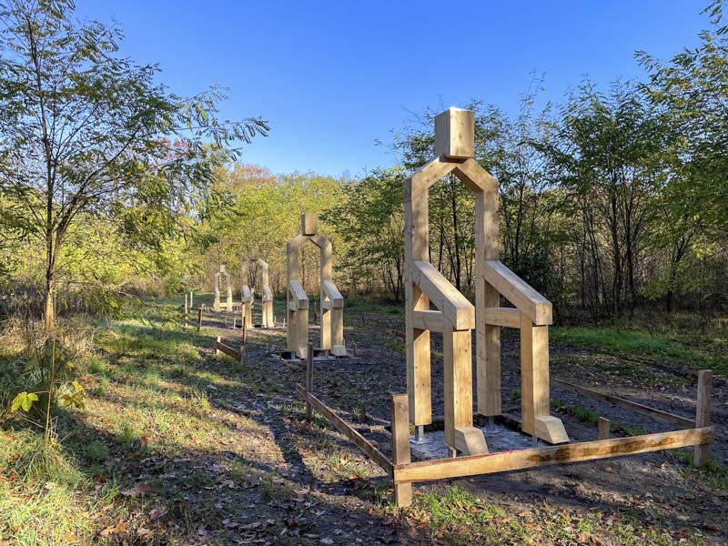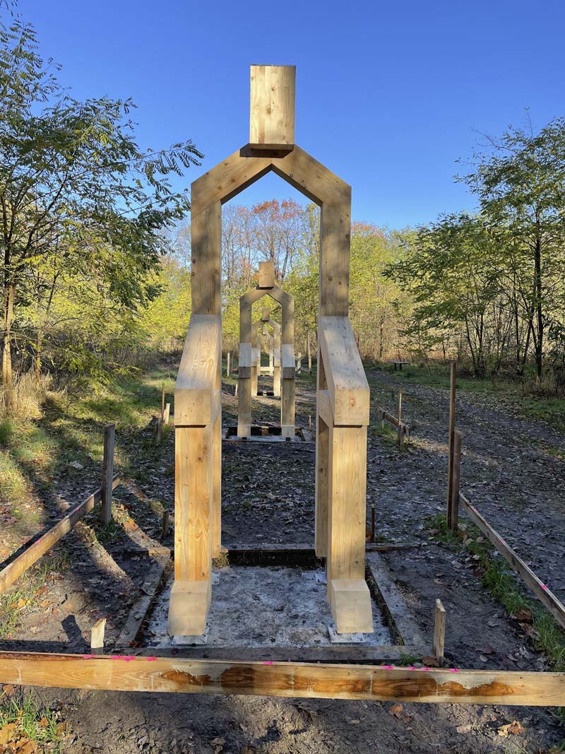 Endlich ist es soweit! Heute haben die Zimmerleute die vier Holzfiguren auf den Fundamenten montiert. Bald findet die Einweihung vor Ort im Vorster Wald statt. Einen Bericht dazu finden Sie bei rp-online: „Türhüter“ bieten neue Perspektiven